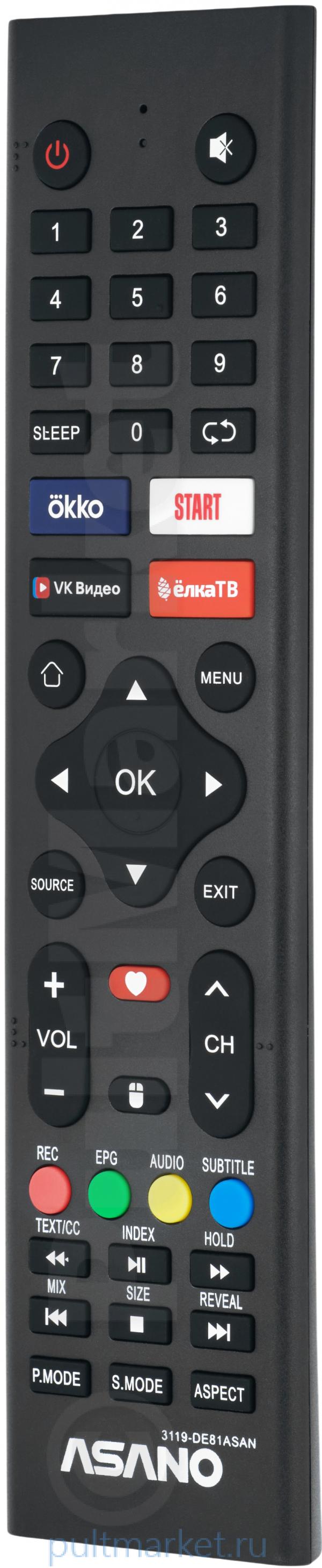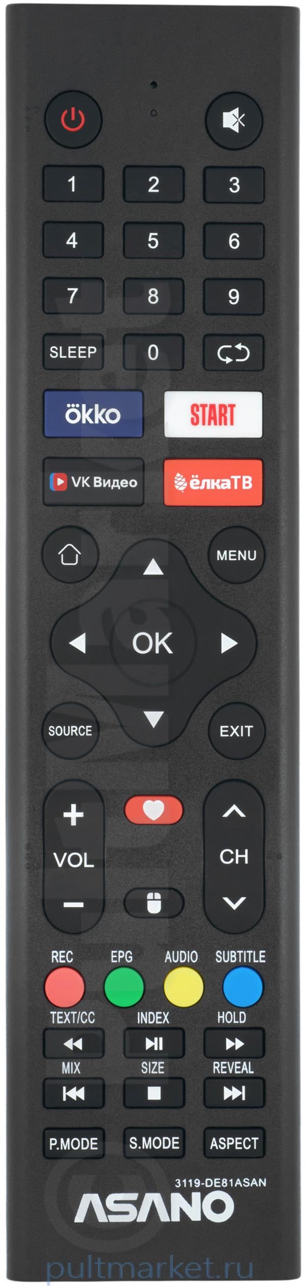 На данной странице мы предлагаем пульт 3119-DE81ASAN для телевизора Asano в черном корпусе.