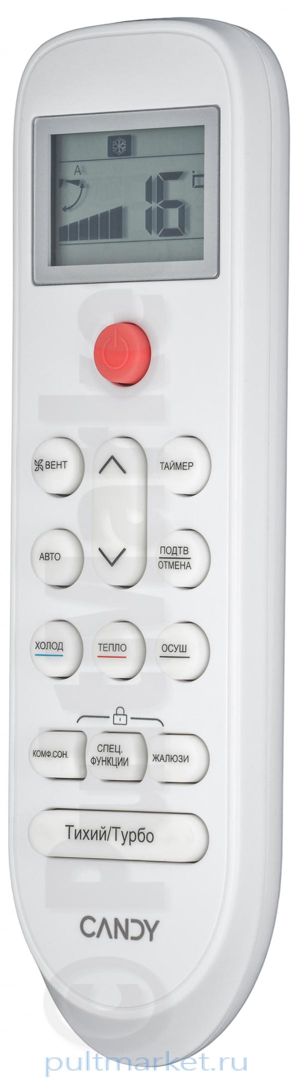 На данной странице представлен пульт для сплит-системы Candy V9014557 L3D (оригинал). Для работы пульта нужно установить две мизинчиковые батарейки (AAA).