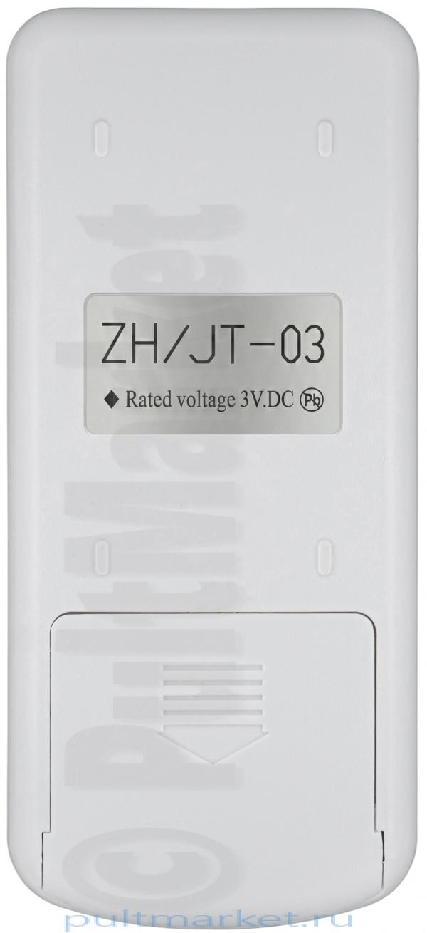 Выполнен в белом цвете. Почти все кнопки, кроме кнопки питания, также белые. Над кнопочками расположен маленький черно-белый дисплей, который не занимает много места. Сам пульт небольших размеров, но на корпусе поместились самые различные функции: установка желаемой температуры, выбор из нескольких режимов работы, изменение скорости вентилятора и потока воздуха, выбор режима ветра, режимы «Турбо» и «Сон», функция «замок», таймер, режим очистки и «лампа» (при наличии). Пульт ZH/JT-03 отлично подходит для кондиционеров, указанных в списке совместимых, и других моделей, которых может не быть в нем. Также данный пульт мог иметь модель ZH/JT-01. Пульт перед выставлением на продажу проходит специальную проверку на работоспособность. Доставляется устройство в надежной упаковке, гарантирующей целостность при транспортировке.