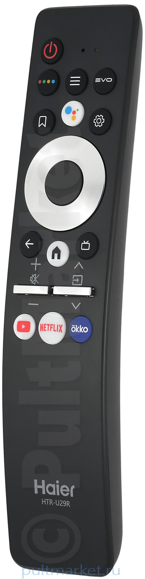 Пульт для телевизора Haier HTR-U29R - оригинальное устройство с голосовым управлением, надёжным Гугл-Ассистентом. Для работы требуется купить к пульту Haier HTR-U29R две мизинчиковые батарейки и произвести сопряжение с телевизором.
