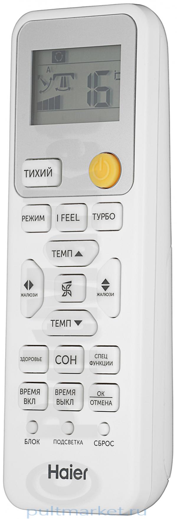 Пульт для сплит-системы Haier V12843-HJ-Q4R-E – качественный оригинал, поставляемый вместе с креплением на стену. Батарейки, необходимые для работы, можно приобрести на данной странице. Просто добавьте их в корзину предварительно. Также советуем, прежде чем заказывать пульт Haier V12843-HJ-Q4R-E, сравнить его с родным, который следует заменить. Он должен выглядеть идентично – и по корпусу, и по кнопкам управления.