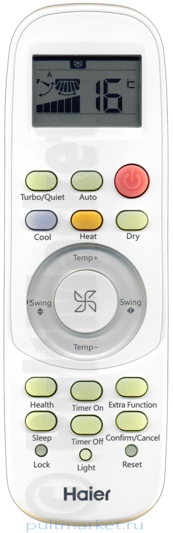 Пульт для сплит-системы Haier V9014557 H2S 9D – оригинальное устройство, поставляющееся вместе с креплением на стену. Переднюю часть корпуса украшает логотип компании, что подтверждает подлинность девайса. Для работы достаточно установить две мизинчиковые батарейки, которые можно купить с пультом Haier V9014557 H2S 9D на нашем сайте.