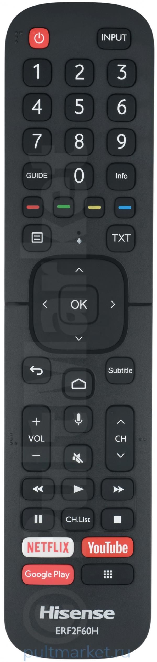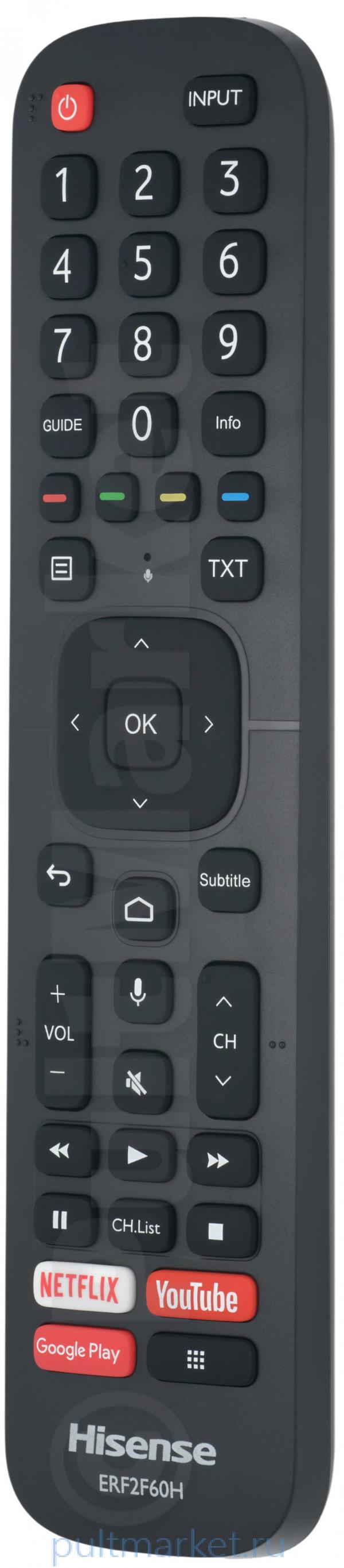 Пульт для телевизора Hisense ERF2F60H произведен компанией Hisense. Также как и на родном пульте здесь имеется голосовое управлением.