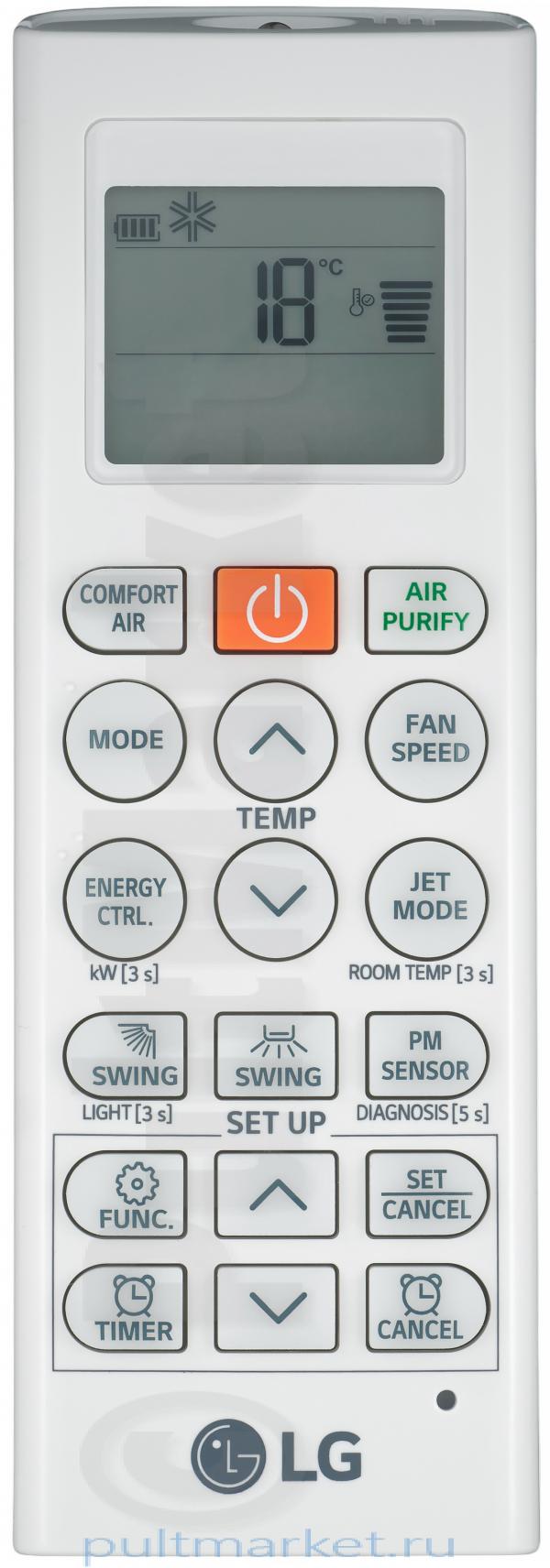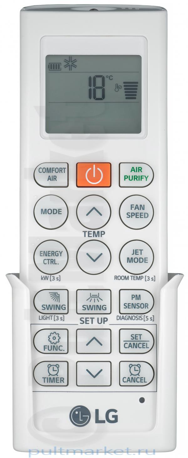 На данной странице представлен пульт для сплит-системы LG AKB75215303 (оригинал). Пульт поставляется вместе с креплением на стену. Для работы пульта нужно установить две мизинчиковые батарейки (AAA).