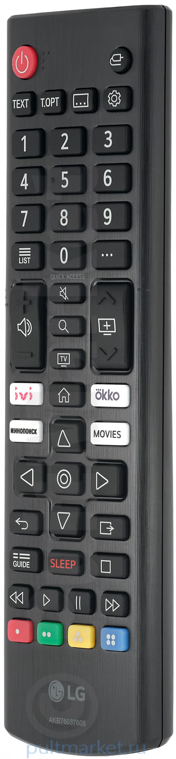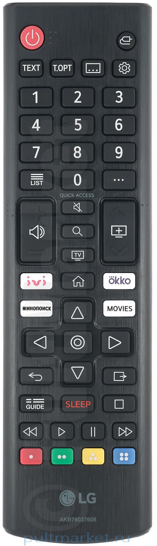 Пульт для Smart-телевизоров LG AKB76037608 – оригинальный девайс стандартного типа, выпущенный для дистанционного управления Smart-телевизорами 2021 года выпуска. Работает от двух батареек ААА, которые можно купить с пультом LG AKB76037608 на данной странице. Также при желании мы можем отправить в одной посылке и специализированный защитный чехол.