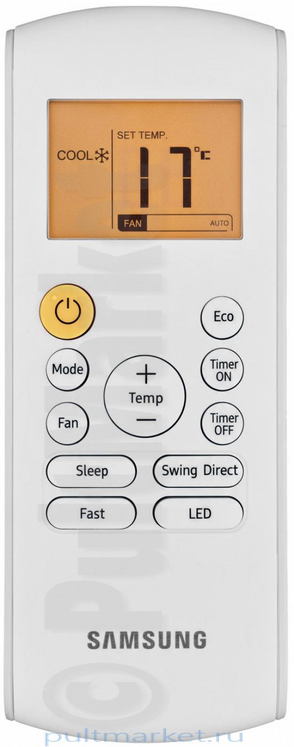 На данной странице представлен пульт для сплит-системы Samsung RG57B1/BGE (оригинал). Для работы пульта нужно установить две мизинчиковые батарейки (AAA).