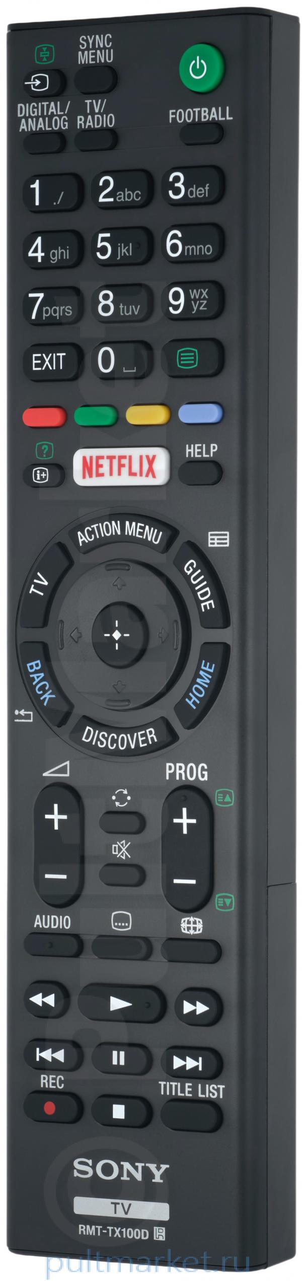 Пульт для телевизора Sony RMT-TX100D. Оригинальное устройство, которое станет полноценной заменой вашего родного ПДУ, пришедшего в негодность. Он идентичен по функционалу, внешнему виду и качеству. Главное – чтобы пульт соответствовал именно вашему телевизору. Поэтому перед тем как купить пульт для Sony RMT-TX100D, внимательно рассмотрите свой старый пульт, или сравните с изображением пульта в руководстве от телевизора.
