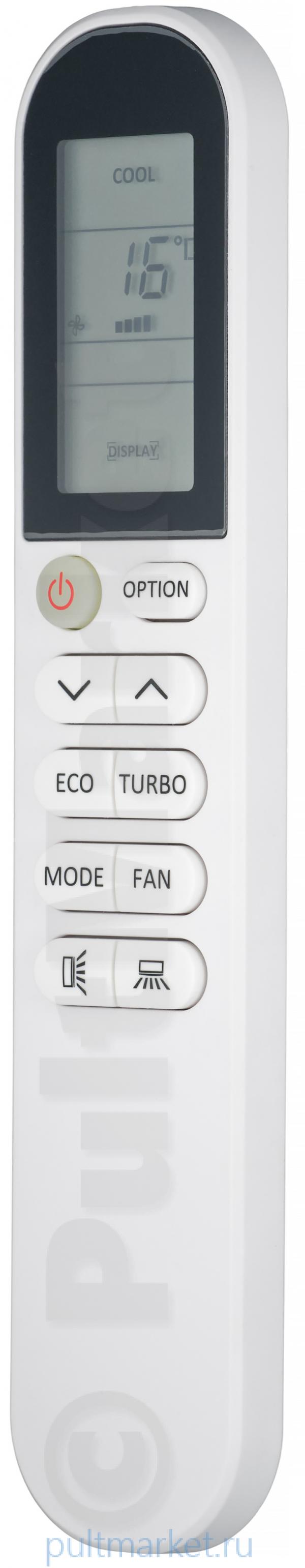 В верхней части расположился экран, отображающий работу сплит-системы и все выполняемые ее функции, символы отображаемые на нем достаточно крупные и разборчивые. Корпус выполнен в светлом цвете, обозначения нанесенные на каждую кнопку так же четкие и легко читаемые.